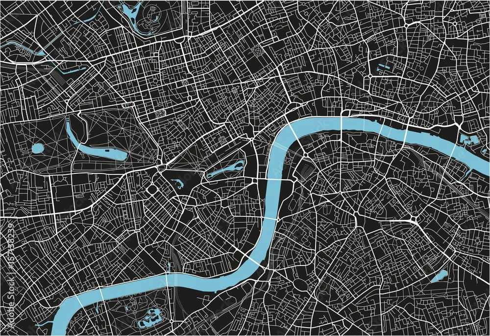 Black and white vector city map of London with well organized separated layers.