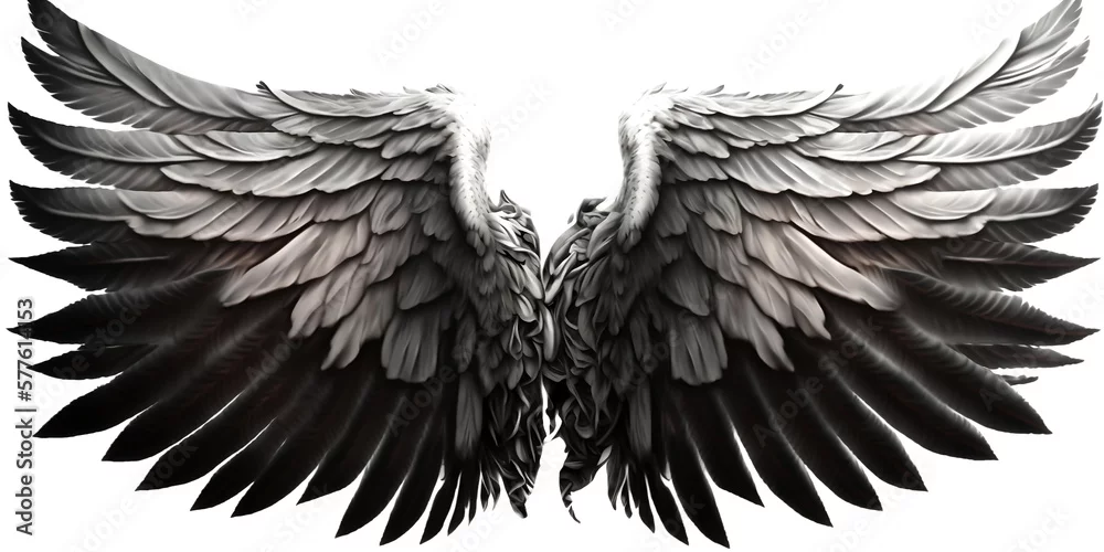 Black angel wings render 3D feather bird wings isolated on white background Generated by Ai