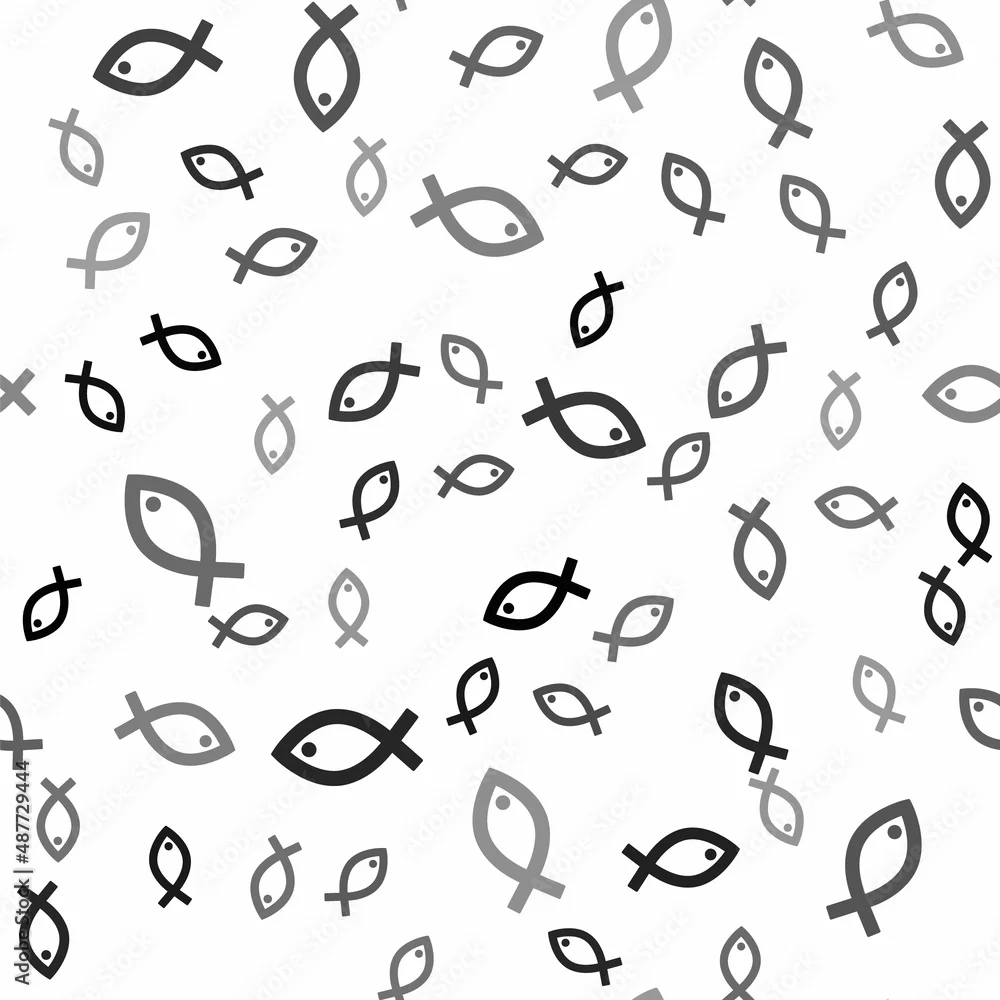 Black Christian fish symbol icon isolated seamless pattern on white background. Jesus fish symbol. Vector