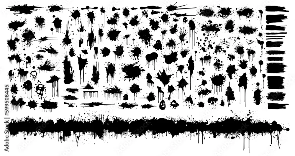 Black ink spots set on white background. Ink illustration.