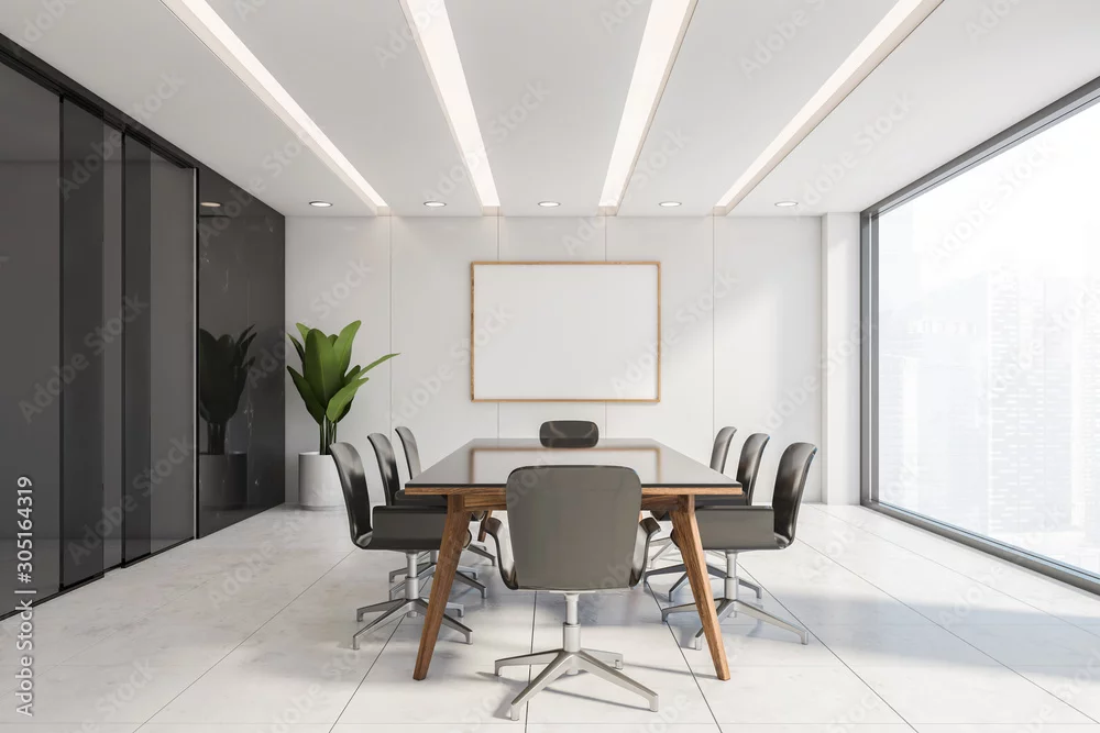 Black marble conference room with poster