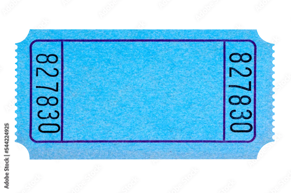 Blank blue ticket stub movie cinema raffle isolated transparent background photo PNG file