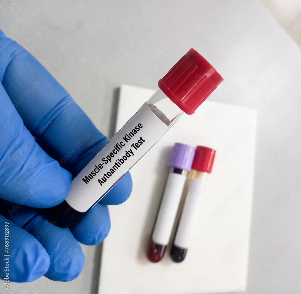 Blood sample for MuSK(muscle-specific kinase) protein test to diagnosis Myasthenia gravis disease. Autoimmune disease.