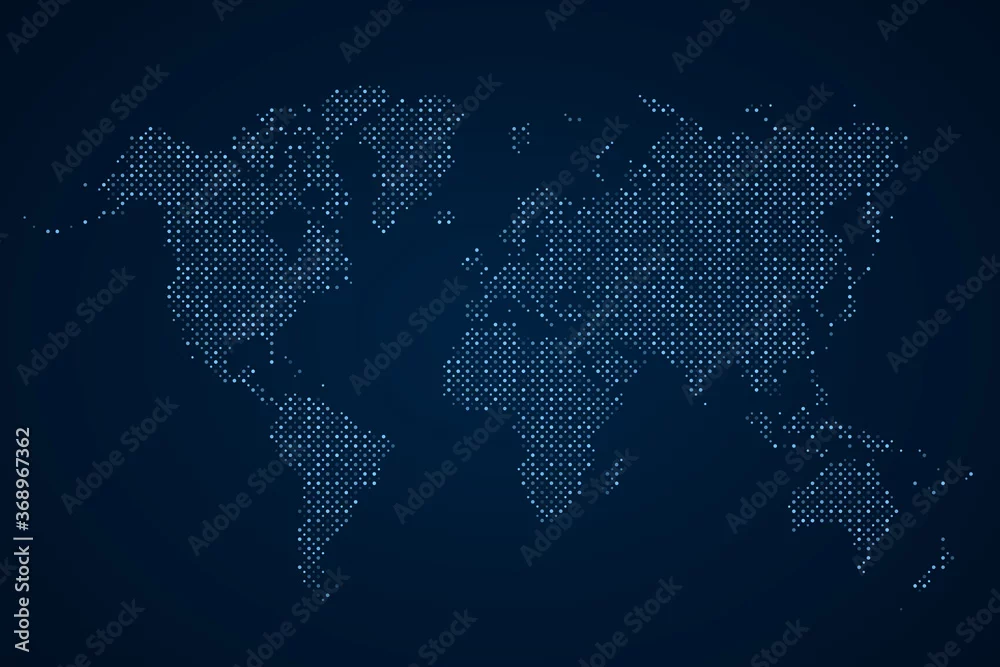 Blue dotted map world. Technology background. Abstract digital dots. Worldmap global point. Earth globe circle. Worldwide continents. Silhouette planet ...