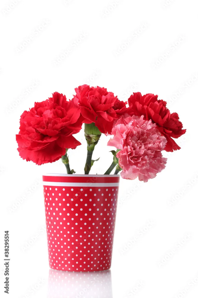 Bouquet of carnations in a glass isolated on white