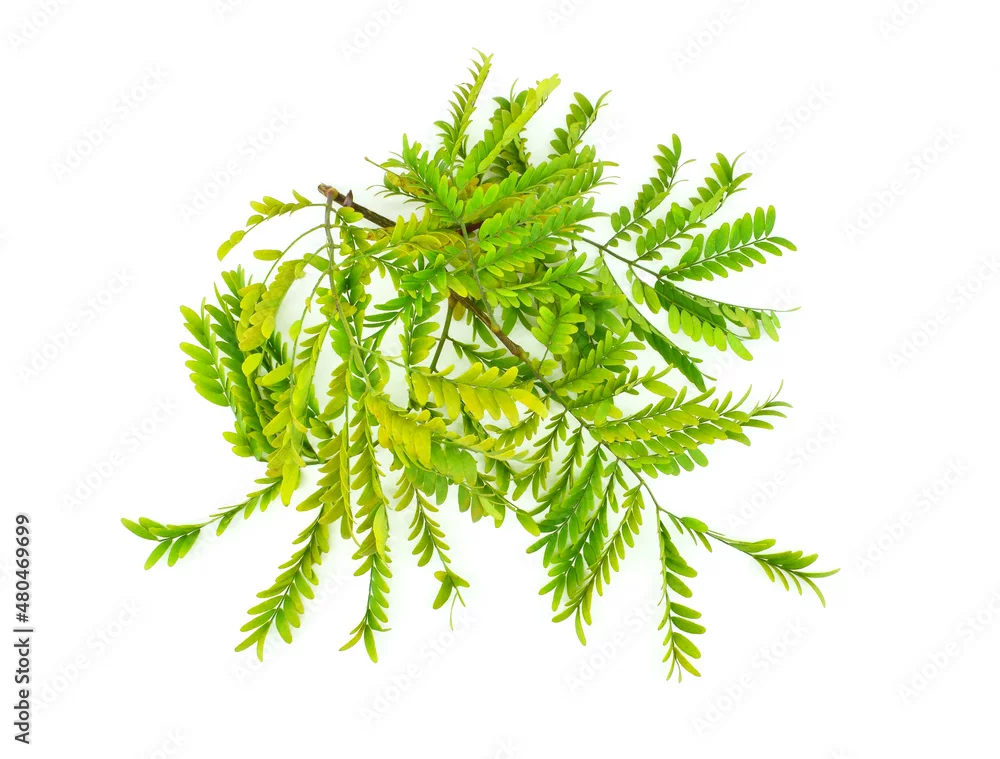 Branch with leaves isolated on white background. The honey locust (Gleditsia triacanthos), also known as the thorny locust or thorny honeylocust.