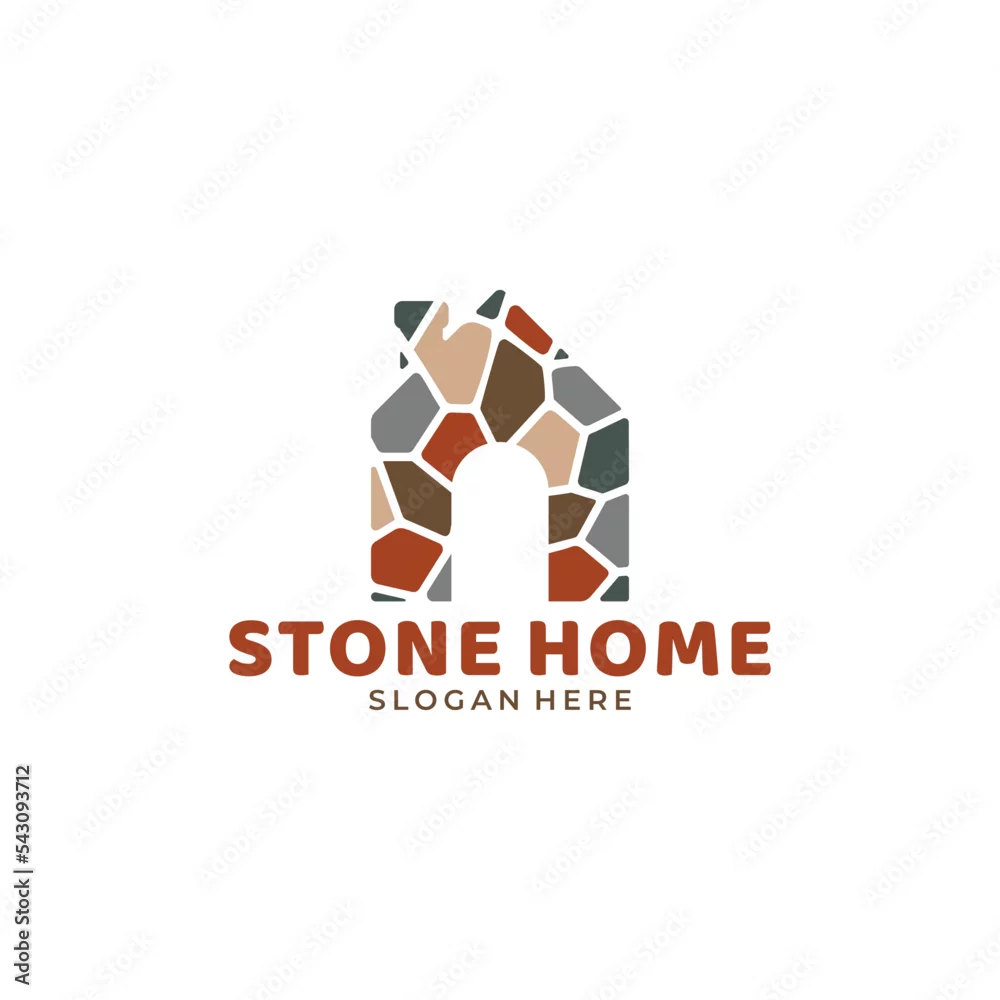 Brick House Logo Stone House Logo Flat Stone House Logo Illustration Icon Vector