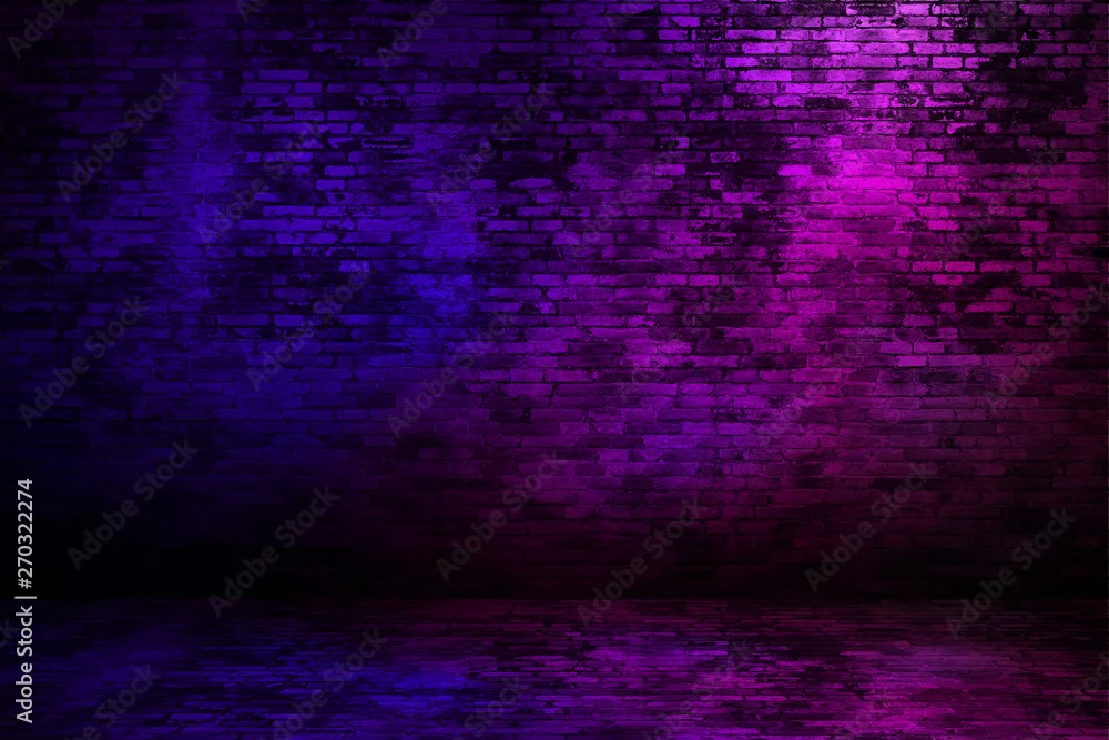 Brick wall texture background with neon light.