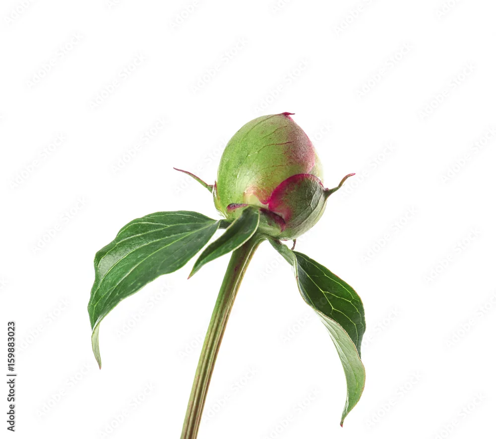 Bud of beautiful peony flower on white background, closeup