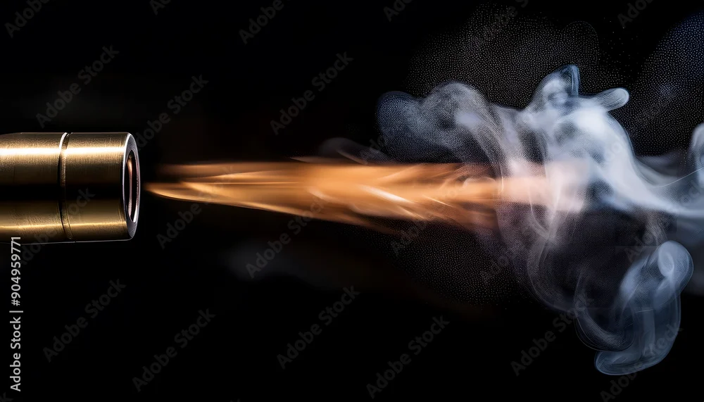 Bullet Leaving a Gun Barrel. A dramatic image capturing the moment a bullet is fired