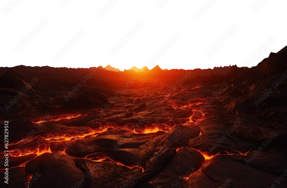 burning alien planet. transparent PNG. lava river. surface of the sun.