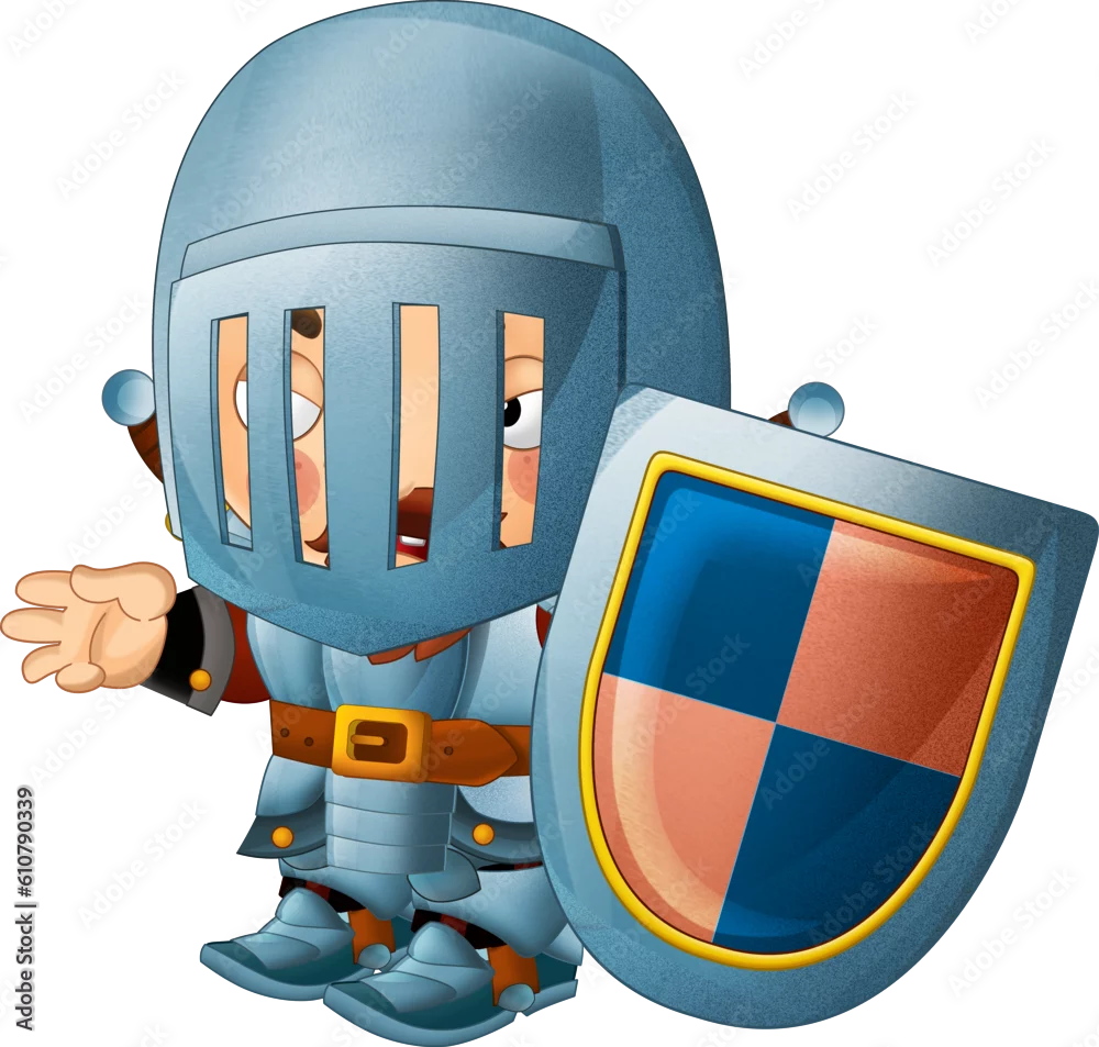 cartoon scene with medieval happy knight in armor isolated illustration for kids