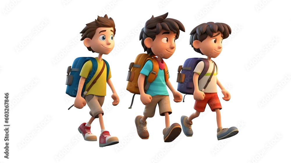 Cartoon Student Kids Character - Transparent Background PNG