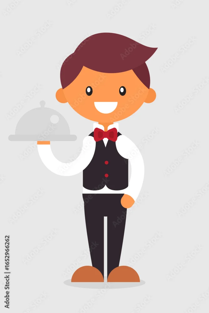 Cartoon Waiter Holding a Serving Tray