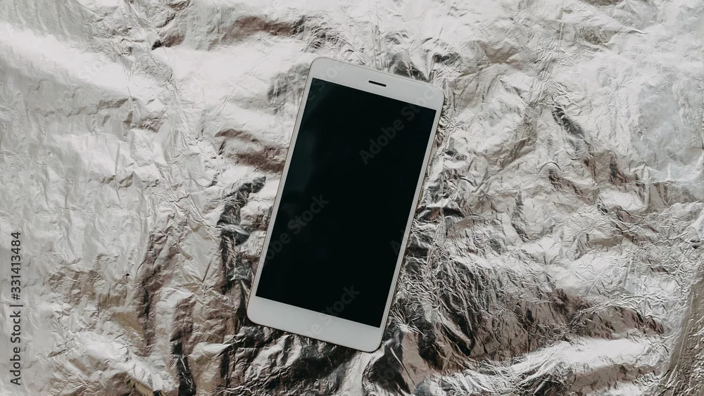 Cell Phone Radiation protect, Mobile Phone Anti-Radiation, Powering Down, Radiation-blocking materials, digital emissions protect concept. Mobile Phone on foil background