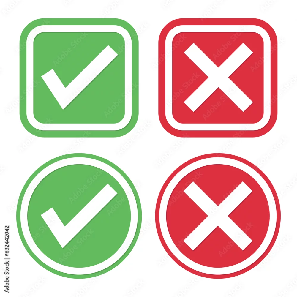 Check Mark Box Icon, Green Yes And Red No Sign, Tickmark Correct And Wrong Set Symbol, Check Mark Stickers Set, Cross, Approved Button And Reject Button, ...