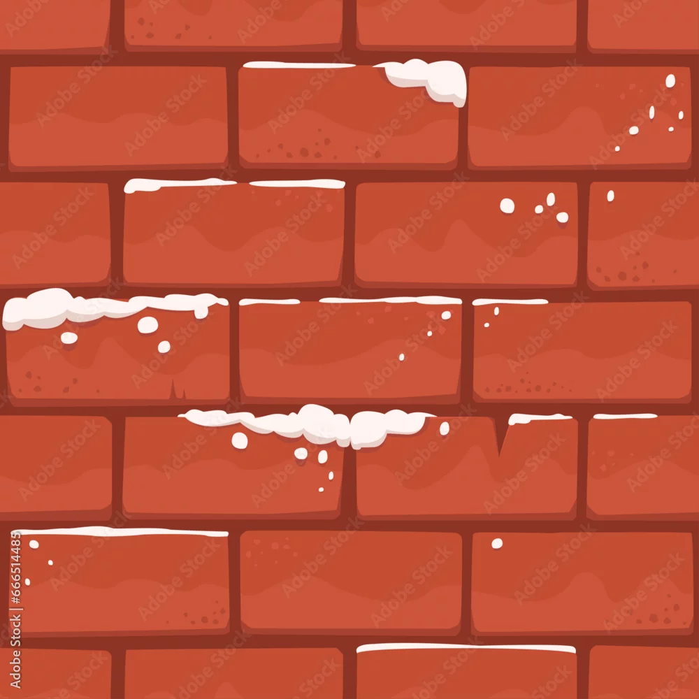Christmas Brick Wall Covered in Snow, Seamless Vector Background. Festive Cartoon Building Blocks with Snow Texture, UI Game Asset