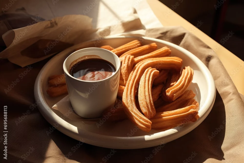 Churro Heaven: Golden and Crispy Churros, Served Hot with Rich Chocolate - A Spanish Delight That Transforms the Tastebuds with Irresistible Sweetness and Traditional Flavors.