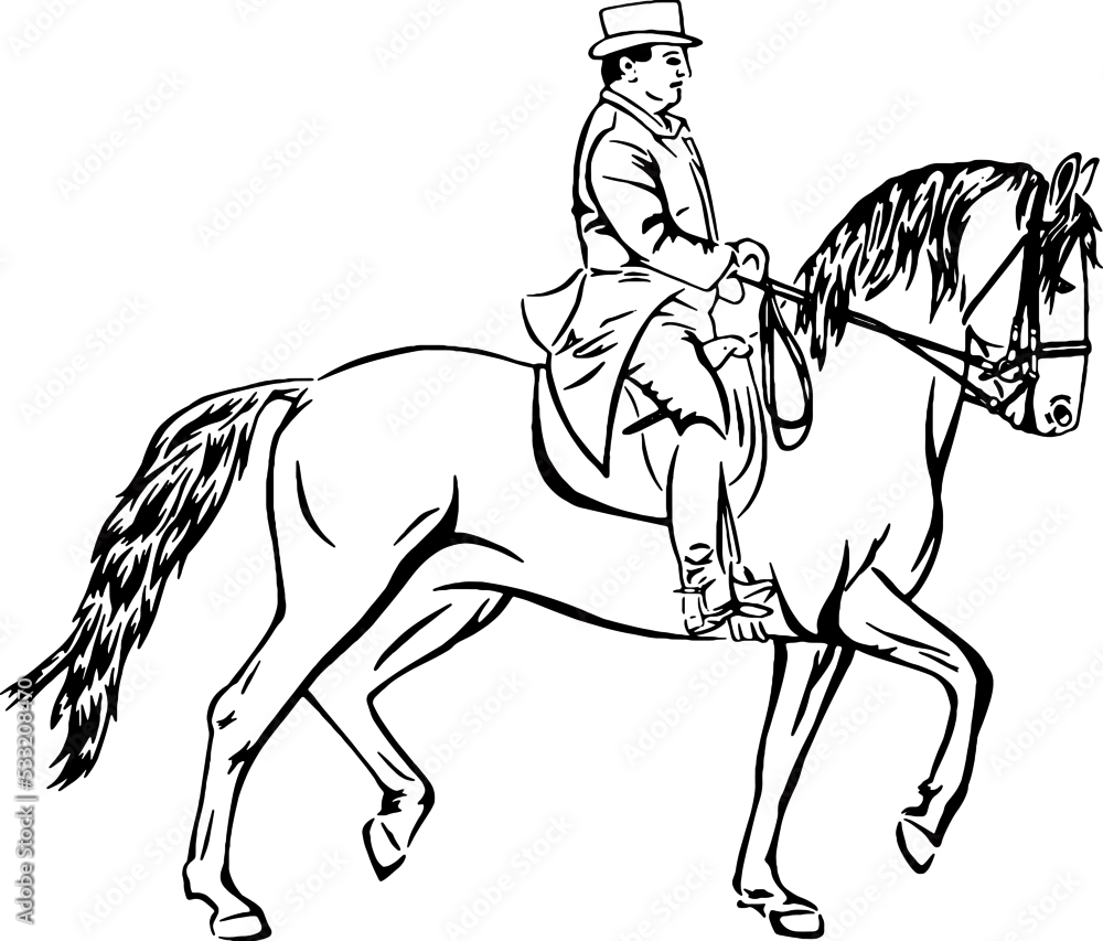 Baroque dressage horse, black outline vector illustrations