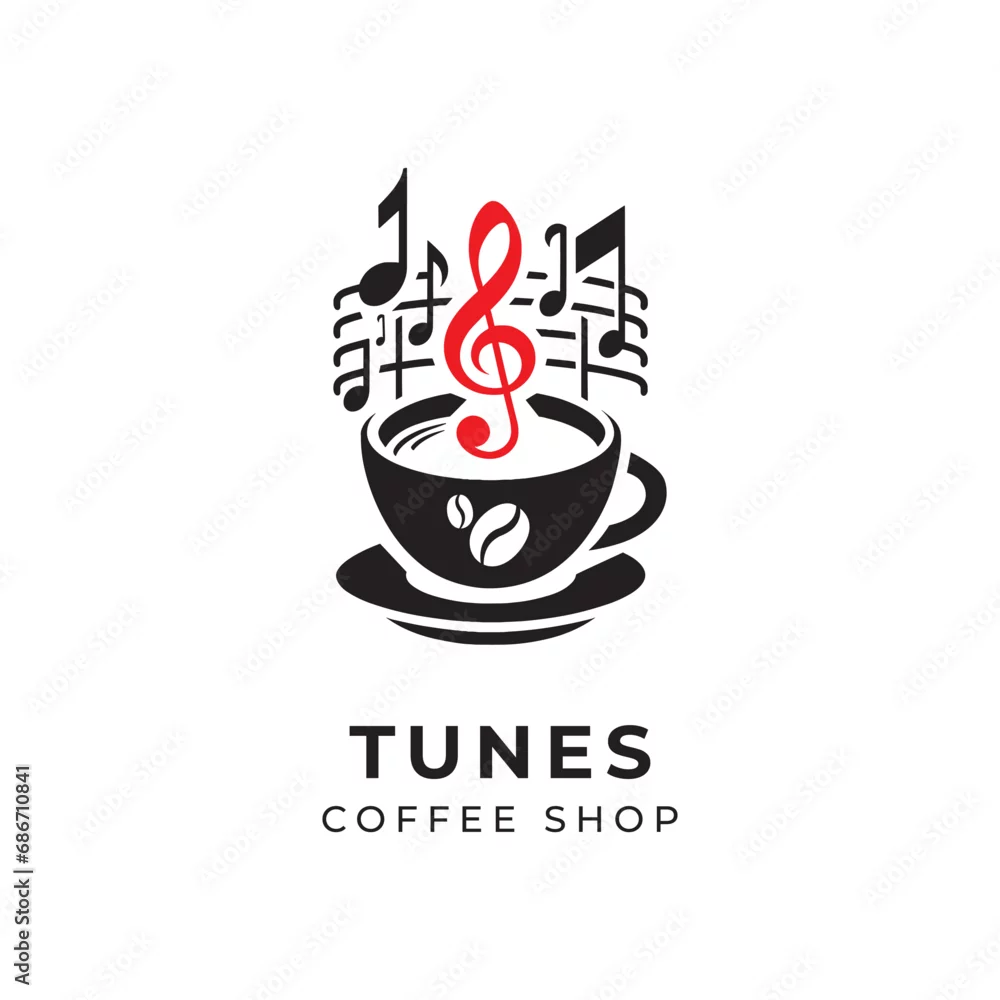 coffee logo and musical notes. Suitable for use in cafes or coffee shops. Logo in a simple modern style. Logo with white isolated background