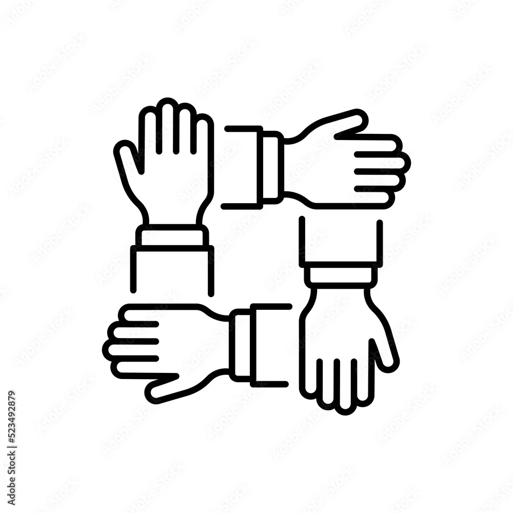 Collaboration Group Team Job Linear Pictogram. Company Participation Line Icon. Teamwork Alliance Partnership Help Together Hand Outline Icon. Editable ...
