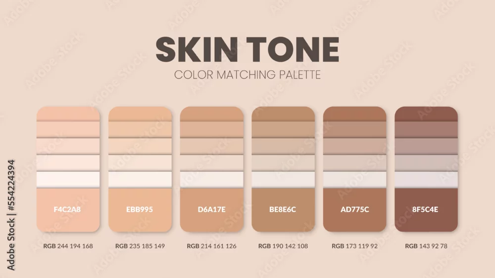 Color palette in Skin tone colour theme collections. Colors chart template. Color combination set of RGB codes. Color swatch for art, fashion, home design, ...