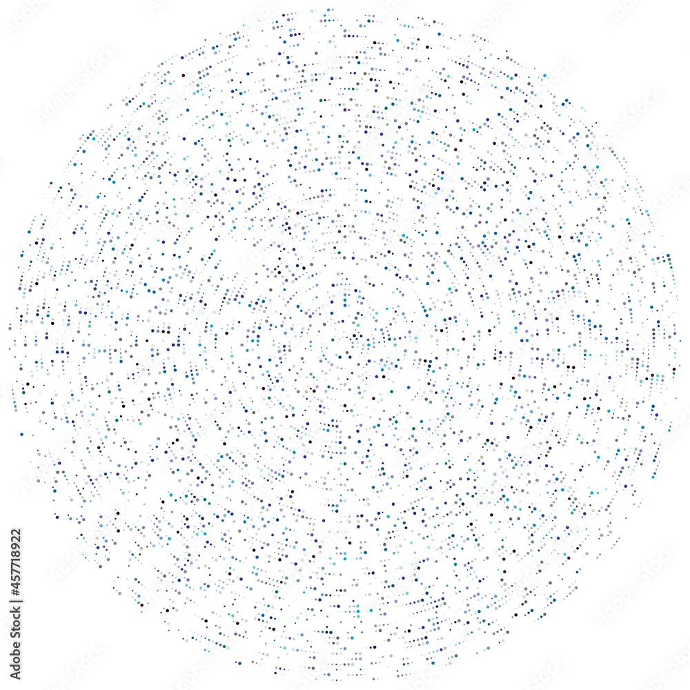 Colorful, colored random circles, dots, speckles and freckles concentric, circular and radial element. Pointillist, pointillism random polychrome halftone ...