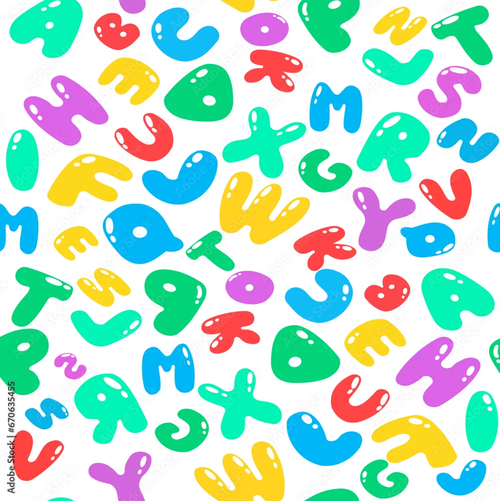 Colorful letter pattern on white background. Vector illustration for education design. Seamless pattern bright color letters random flying. Alphabet book ...