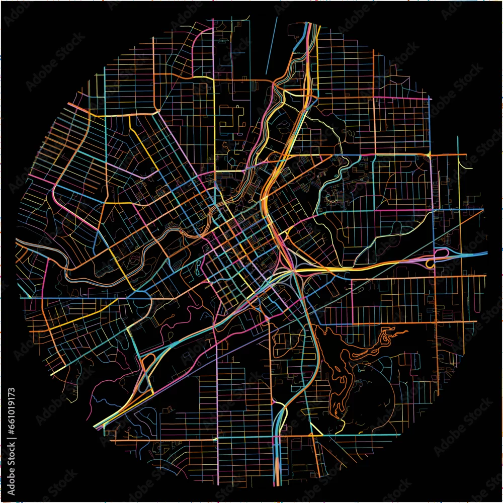 Colorful Map of Flint, Michigan with all major and minor roads.