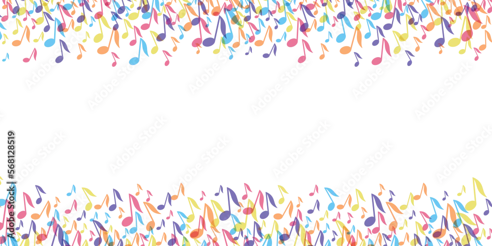 Colorful Music notes border frame. Vector Illustration background