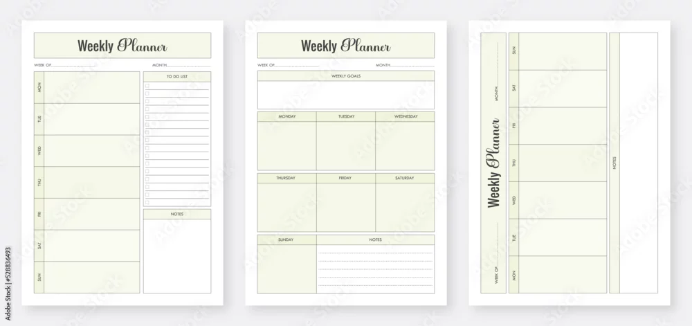 Colorful Weekly Planner Template Layout. Vertical Weekly Planner. Vector Weekly Planner Template Design. Business organizer page. Minimalist planner pages templates. Printable Planner Set.