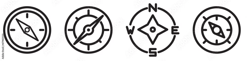 Compass icons vector set isolated on transparent background. Compass symbol set. Wind rose signs. North, South, East, West. Vector illustration.