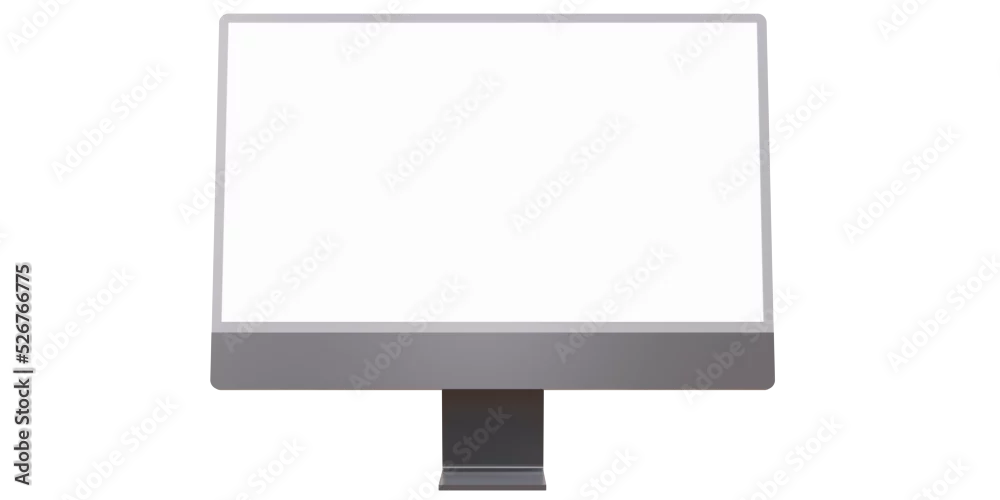 Computer desktop blank monitor, pc white screen isolated, transparent background. PNG