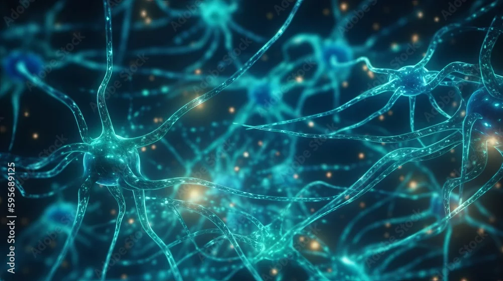Conceptual illustration of neuron cells, close-up. AI generated