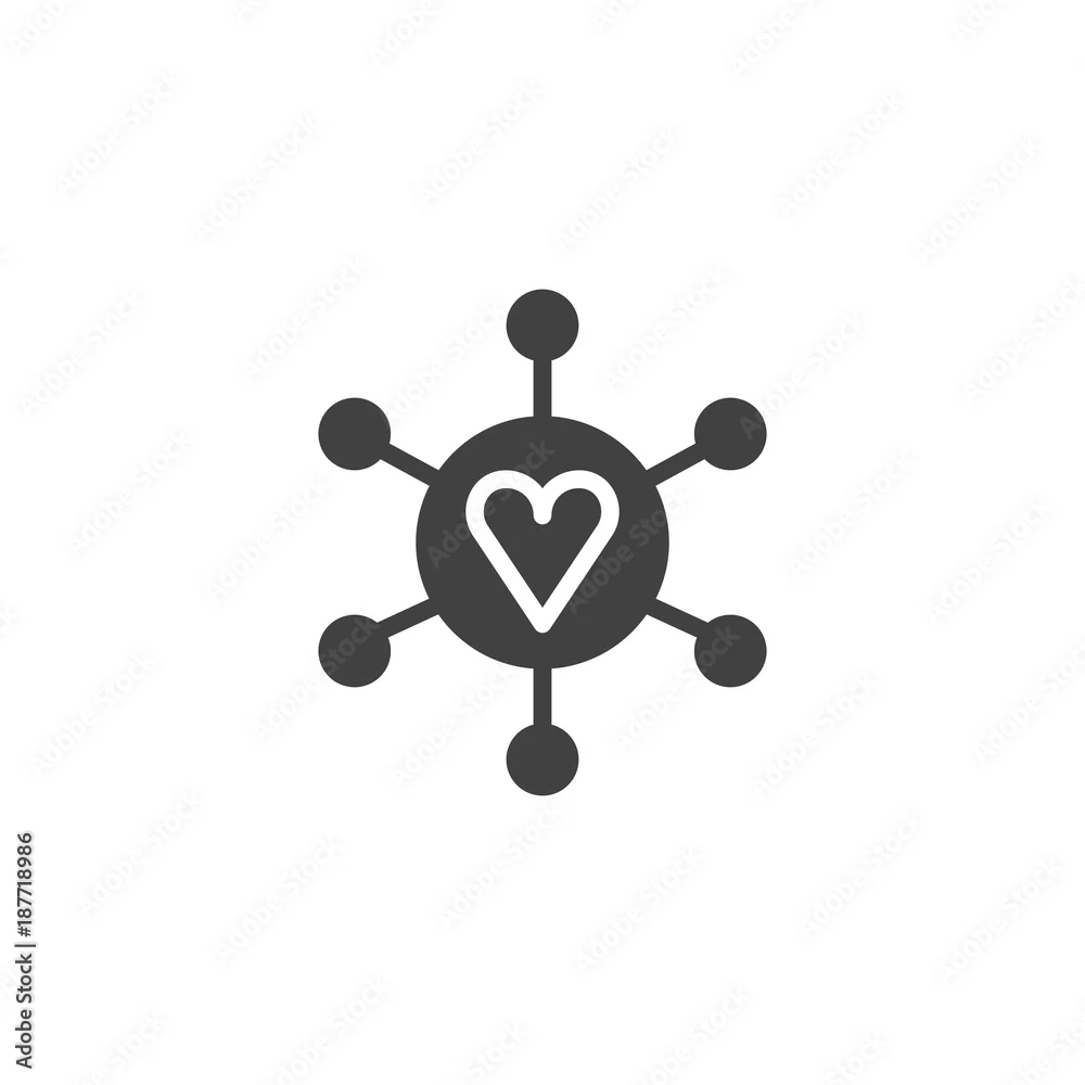 Connected loving heart icon vector, filled flat sign, solid pictogram isolated on white. Hub and spoke with heart symbol, logo illustration.