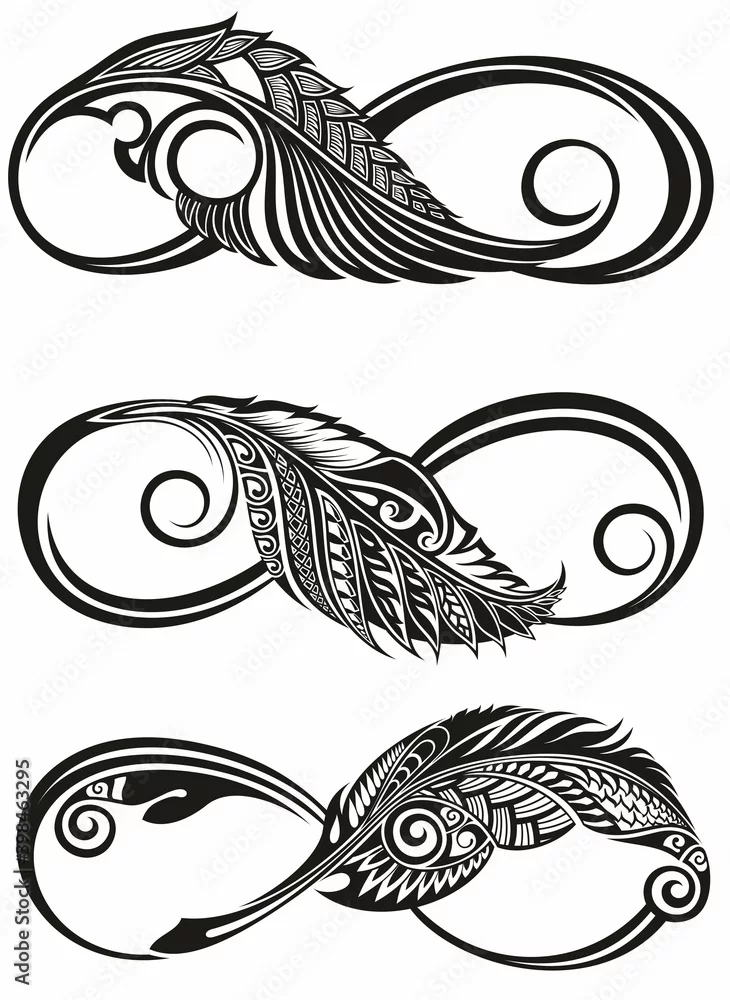 Contour, artistically drawn infinity symbol with feather .Tattoo infinity symbols