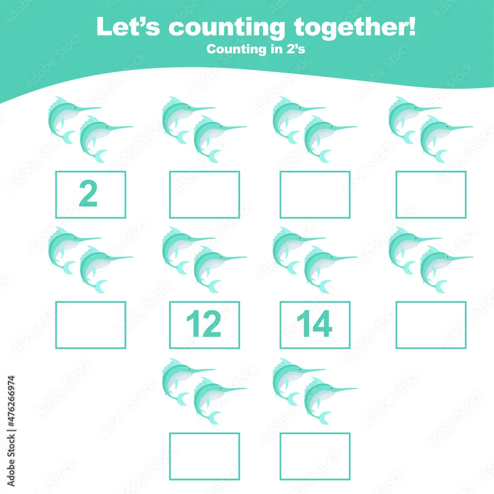 Counting the sea animals for Preschool Children. Math worksheet with sea animals’ theme. Educational printable math worksheet. Vector illustration.
