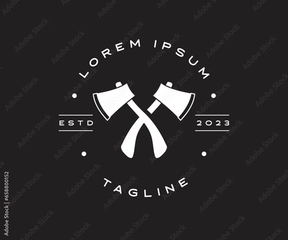 Crossed axes logo. Crossed hammers logo. Textured vintage tools vector illustration