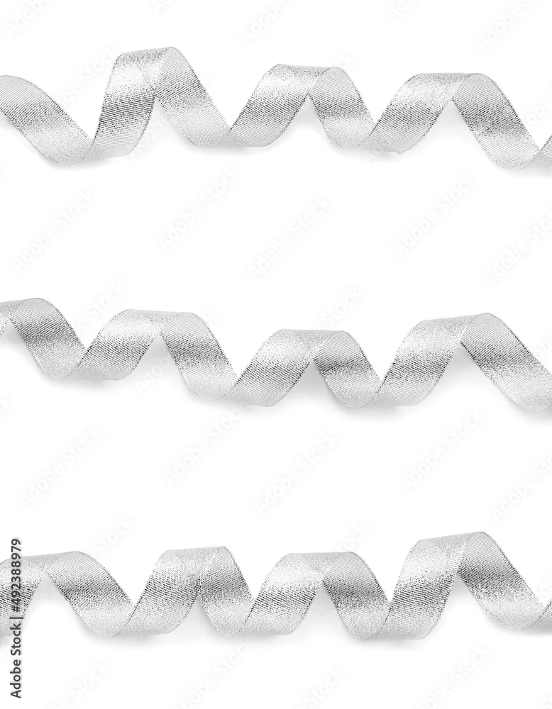 Curly silver ribbons on white background