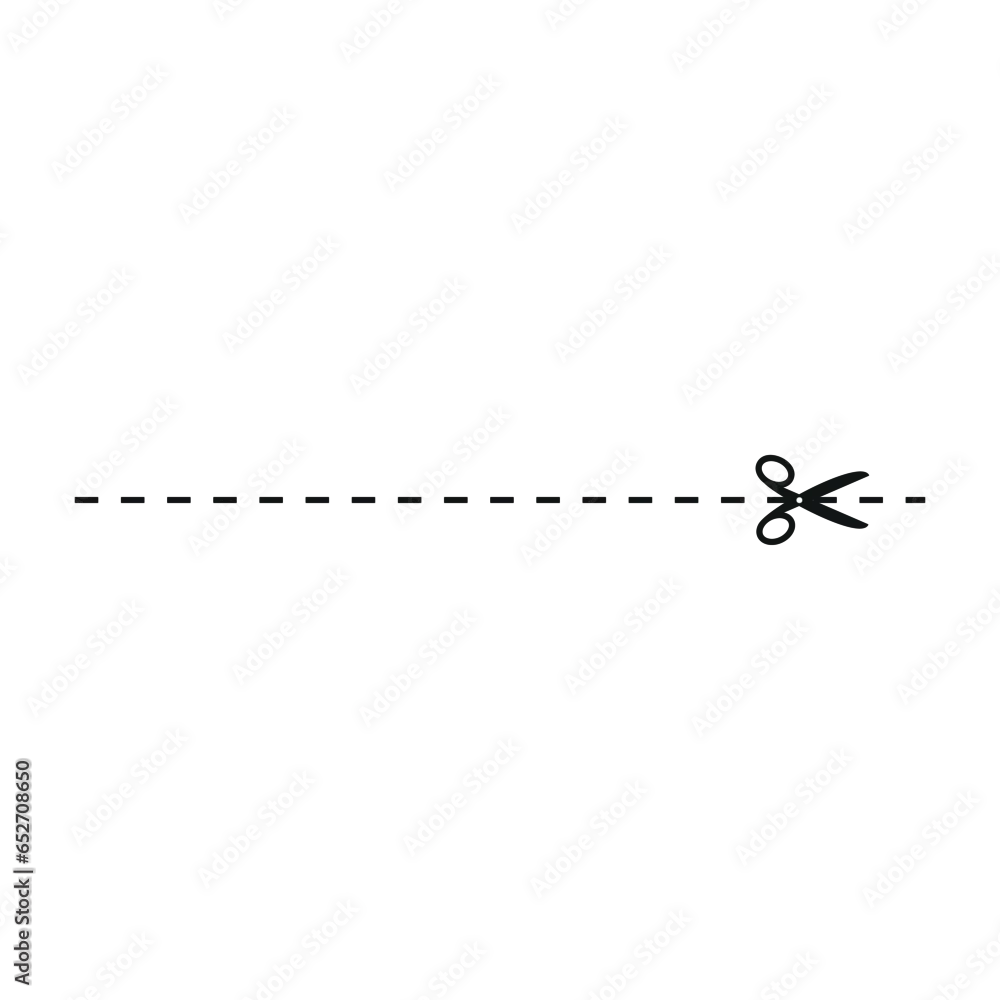 Cut line icon with scissor, cut here guidance, scissors and dash. Coupon mark and symbol for cropping, signifying voucher. Flat vector illustrations isolated ...