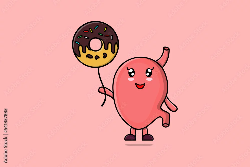 Cute cartoon Stomach floating with donuts balloon cartoon vector illustration