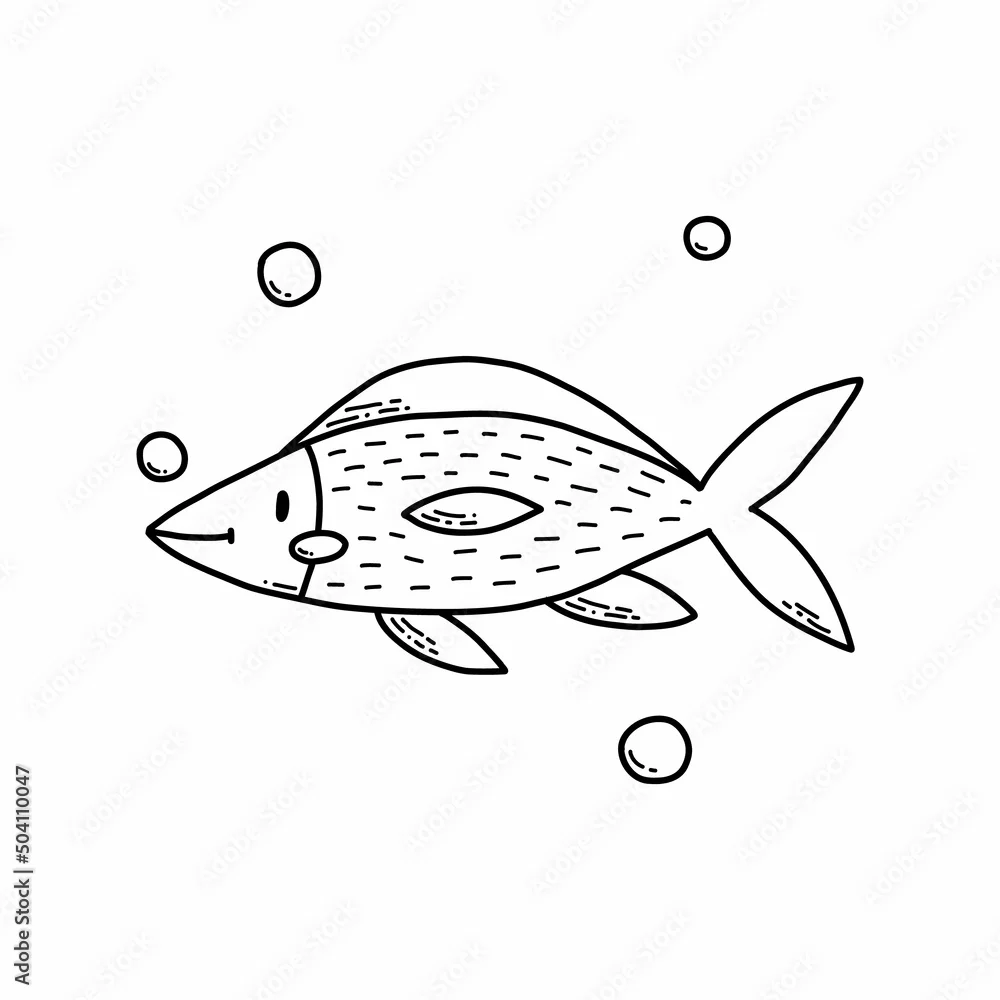 Cute doodle sea fish. Coloring page for kids. Vector illustration.