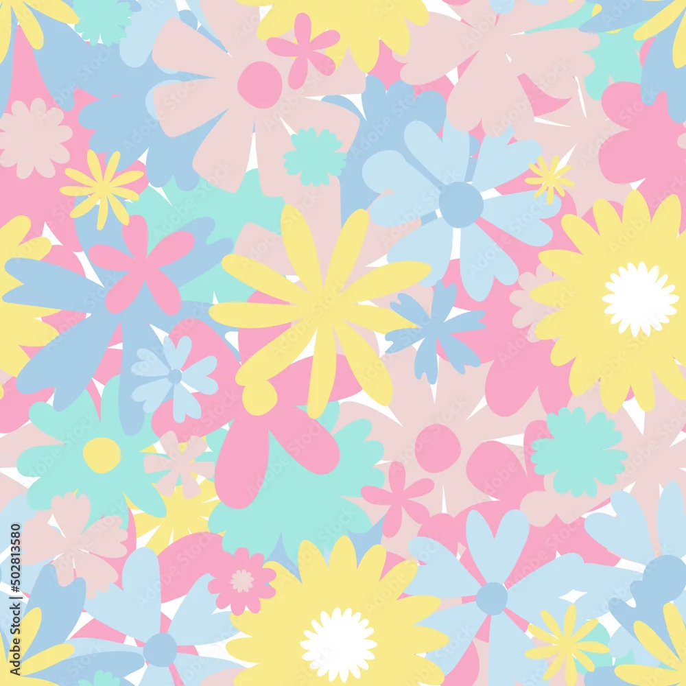 Cute seamless flower pattern. Spring background from simple floral decorative elements. Can be used as pastel print for wallpaper, fabric or textiles, ...