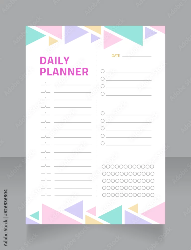 Daily planner for children activities worksheet design template. Printable goal setting sheet. Editable time management sample. Scheduling page for organizing personal tasks. Cairo font used