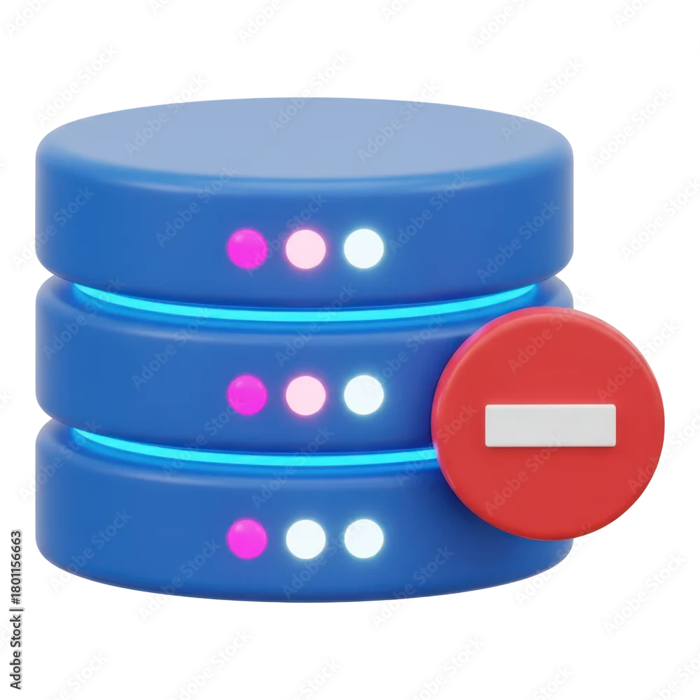 Database server with minus sign isolated on transparent background, data storage concept