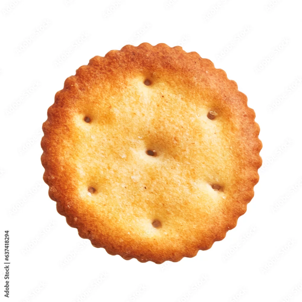 Delicious single salty biscuit over isolated white background
