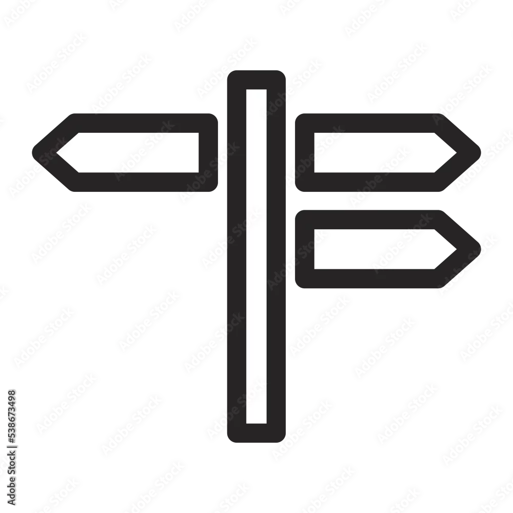 directions icon, black and white color, transparent background