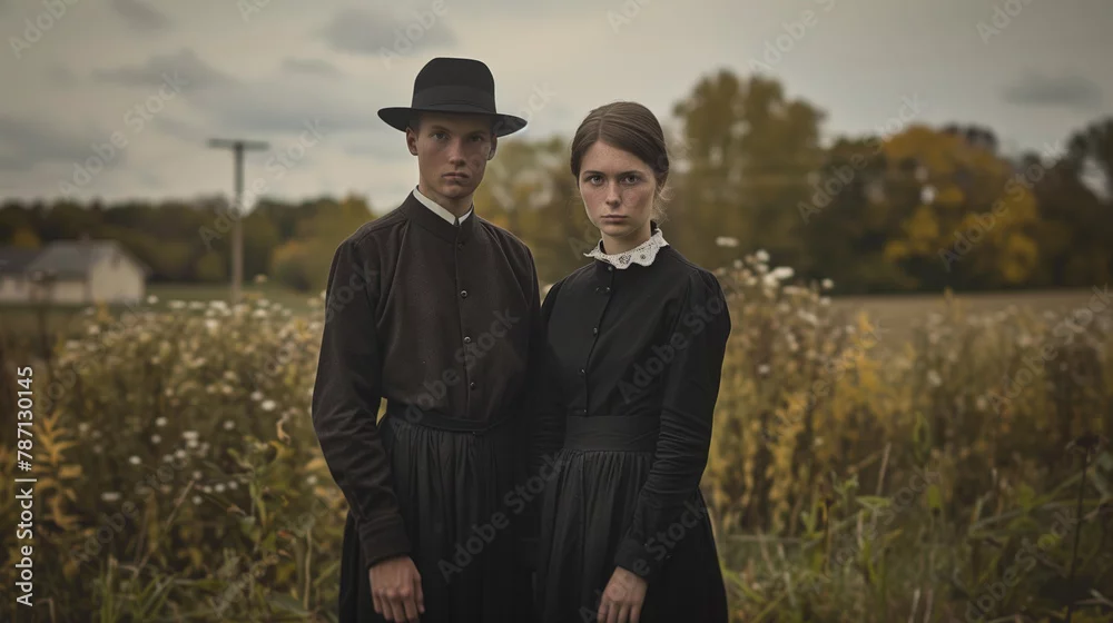 Distinctive attire and modest clothing worn by members of the Amish community.