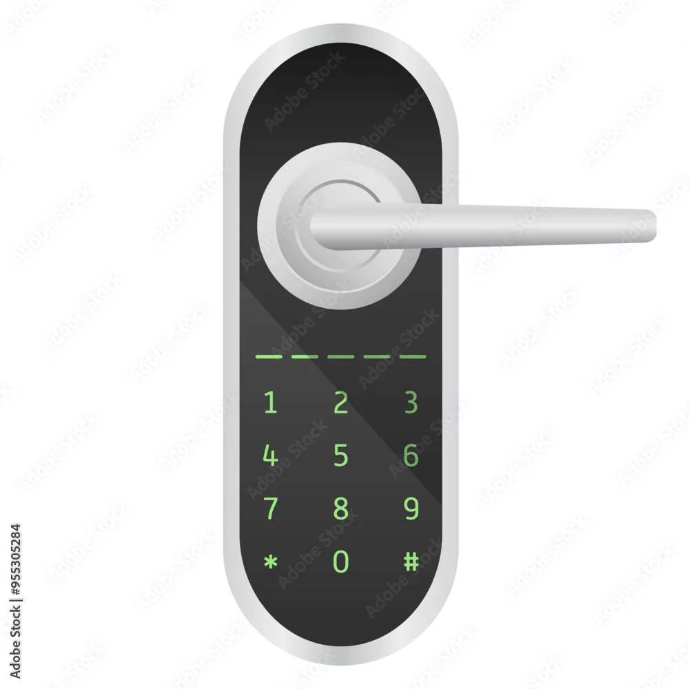 Door handle with number dialing. Metallic gradient, intercom, call, black glass, modern design, interior, decor item, furniture, lock, magnet, remote control, ...
