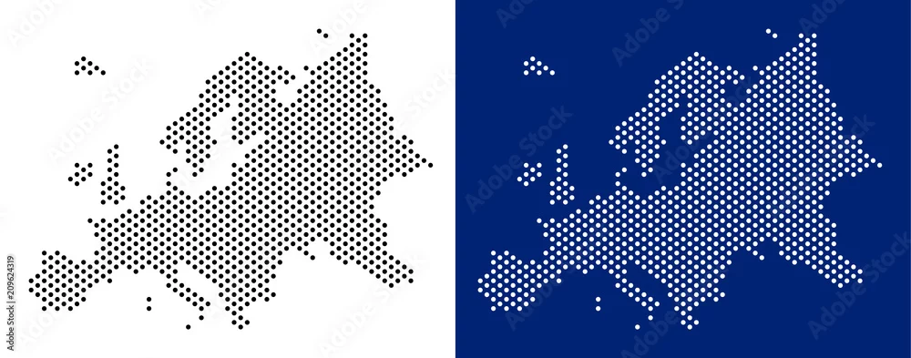 Dotted Europe map. Vector geographic map on white and blue backgrounds. Vector concept of Europe map constructed of round points.